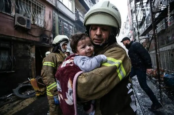 عکس/ نجات نوزاد توسط آتشنشان فداکار از محل انفجار گاز