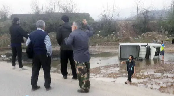 وانت پیکان با سه سرنشین به داخل رودخانه شیرجه رفت! +فیلم لحظه سقوط