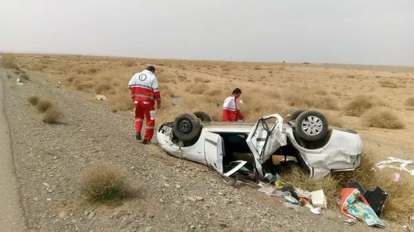 واژگونی خودروی تیبا در جاده بجستان - فیض آباد یک کشته و ۲مجروح داد+عکس