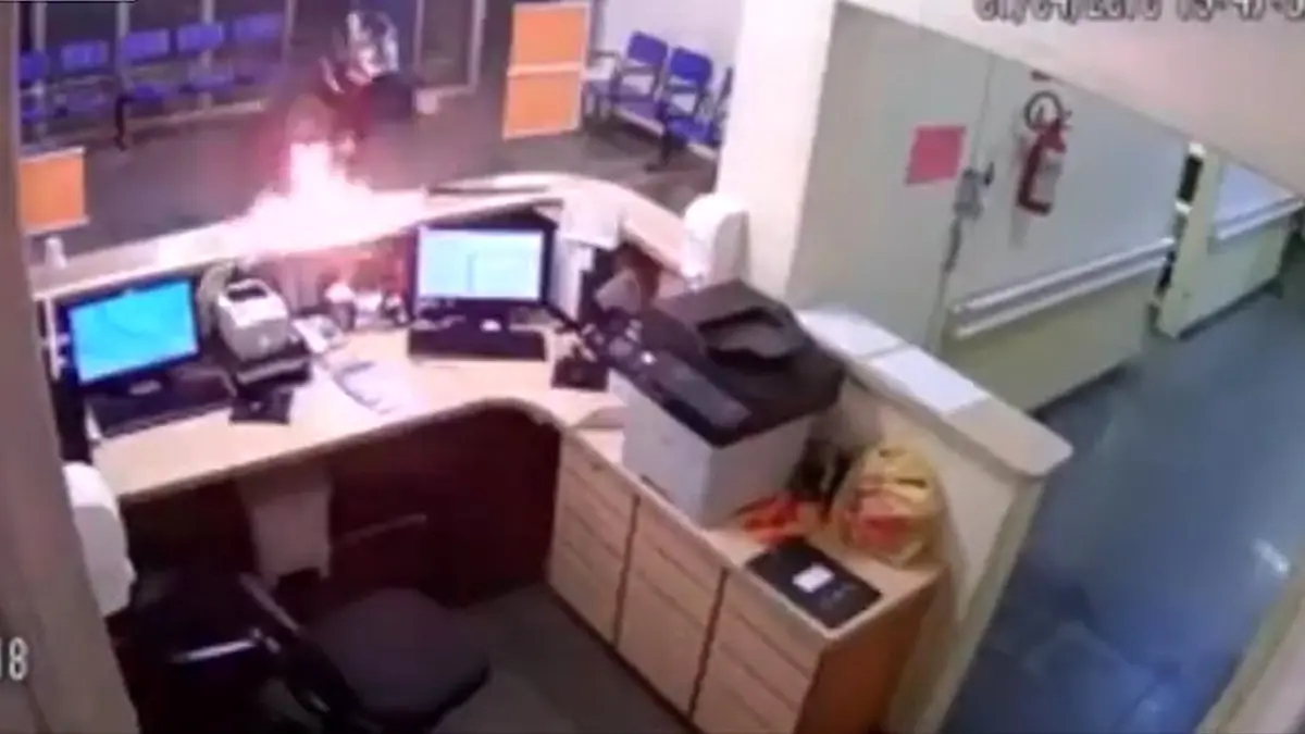 تصاویر دوربین های مداربسته یک بیمارستان در برزیل لحظه به آتش کشیدن بیمارستان توسط یک بیمار ناراضی را نشان می دهد. همان طور که در این ویدئو مشاهده می کنید او به سمت کانتر پذیرش در سالن انتظار می رود و با ریختن مواد اشتعال زا آن محل را به آتش می کشد. بنا به گزارشات این مرد از ارائه خدمات درمانی به فرزند بیمارش ناراضی بوده و حدود دو ساعت برای گرفتن خدمات از آن ها صبر کرده است.برای ورود به کانال تلگرام ما کلیک کنید.