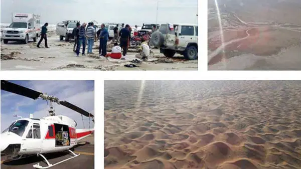 سه گردشگر وقتی از بیرون کشیدن خودرو ناامید شدند تصمیم گرفتند به صورت پیاده به مسیر خود ادامه دهند تا شاید نجات پیدا کنند. دو نفر از گردشگران به سمت معدن نمک که در جنوب دریاچه بود رفتند و نفر سوم به سمت شمال حرکت کرد. کارگران معدن با مشاهده دو گردشگر به سمت آنها رفته و نجاتشان دادند اما از سومین نفر خبری نبود. با گزارش این حادثه Incident به تیم‌های امدادی، نیروهای محلی و امدادگران هلال احمر وارد عمل شدند و جست‌وجو در منطقه را آغاز کردند.