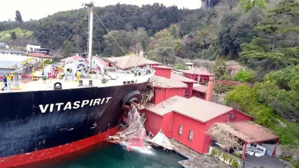 حوادث رکنا: تانکر"Vitaspirit" با پرچم مالتا به عمارت قدیمی واقع در تنگه بسفر در نزدیکی استانبول برخورد کرد.