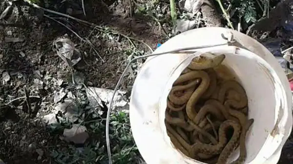 حوادث رکنا: 12 حلقه مار افعی در یک منزل مسکونی در روستای آق قلعه تکاب به دام افتاد.