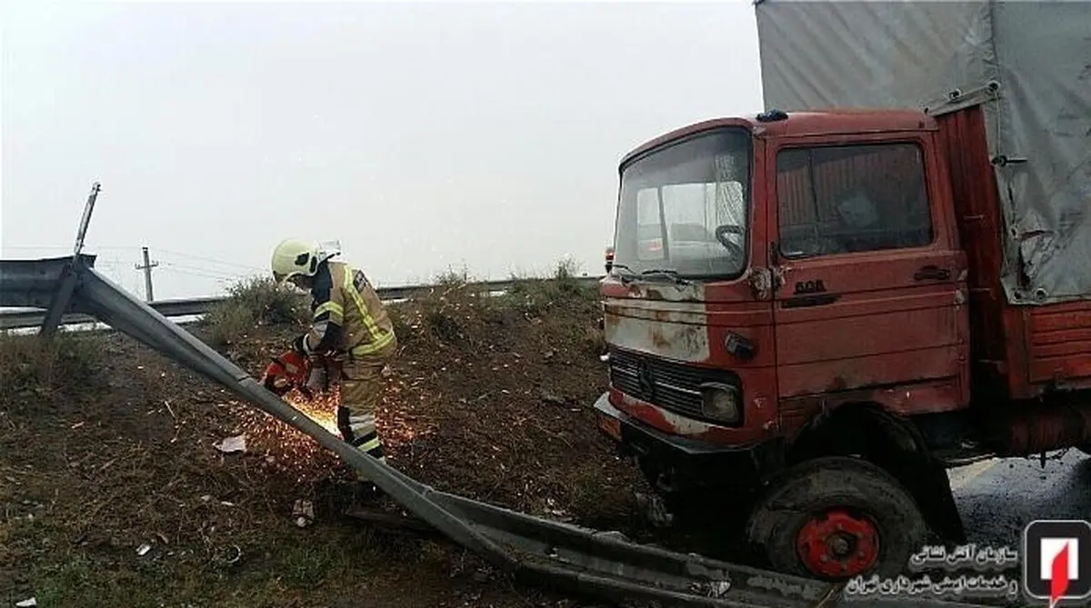 سقوط کامیونت از ارتفاع 2 متری در جاده ورامین + عکس