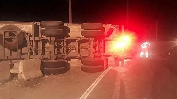 واژگون شدن تریلی یخچال‌دار حامل گوشت + تصاویر