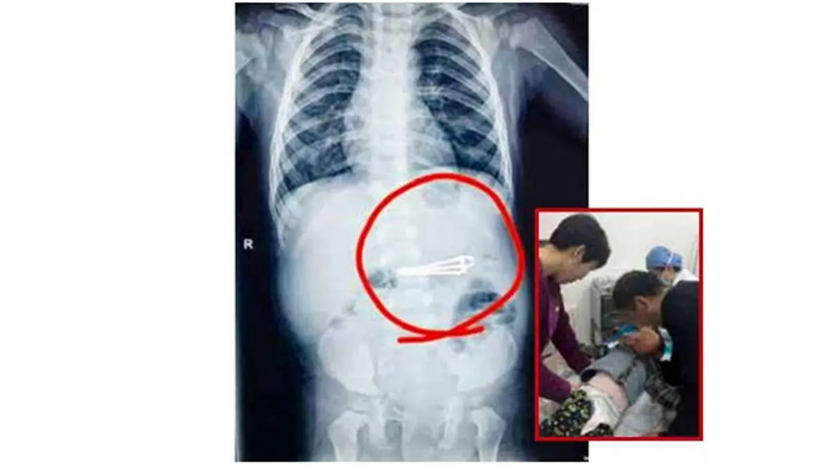 حوادث رکنا: پزشکان چینی موفق شدند یک ناخن گیر را از شکم کودک 16 ماهه خارج کنند.