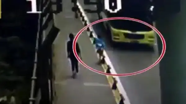 در استان چونگ کینگ چین زنی به همراه پسر 6 ساله اش مشغول پیاده روی بودند که یکباره کودک خردسال دست مادرش را رها کرد و به سمت گاردریل کنار خیابان رفت.
