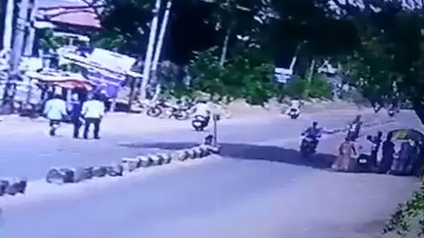 یک سگ در شهر وارانگل در ایالت تلنگانای هند که به صورت ناگهانی به وسط خیابان آمده بود با یک موتورسوار تصادف Crash کرد.