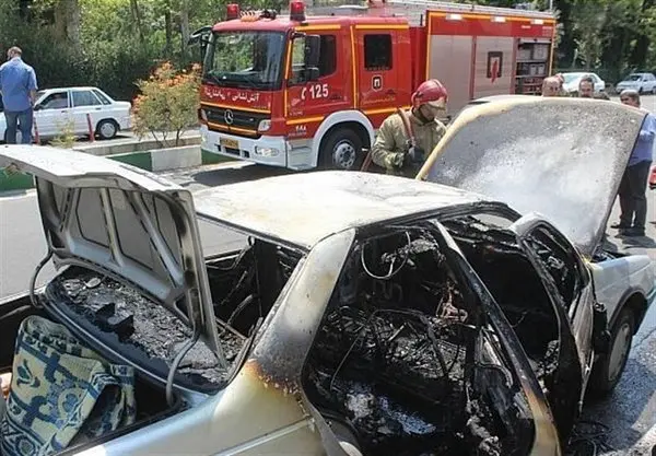 آتش سوزی پژو ۴۰۵ در شهرک اکباتان + تصاویر