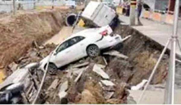 حوادث رکنا: نشست ناگهانی آسفالت خیابان در شرق چین حادثه آفرید.
