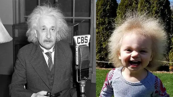 رکنا:دختربچه 17 ماهه آمریکایی به دلیل ابتلا به سندرومی خاص، موهایش به شکلی درآمده که او را شبیه انیشتین کرده است.