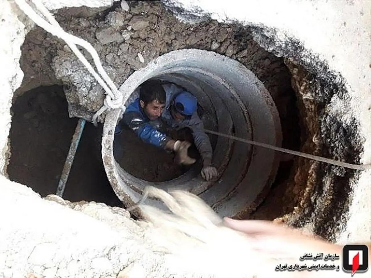 چاه کن جوان گرفتار چاه خیابان مطهری شد+تصاویر