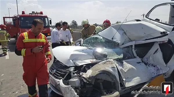 علی اکبر فرمانی رییس ایستگاه 50 آتش نشانی با اعلام اینکه محل رخداد حادثه Incident خارج از محدوده آتش نشانی تهران بود، گفت: یک دستگاه خودرو سواری رنو ساندرو با دو نفر سرنشین، حین تردد در آزادراه ناگهان از مسیر اصلی خارج شده و به شدت با بلوک های سیمانی وسط مسیر برخورد کرده و پس از آن، به شدت با قسمت عقب یک دستگاه جرثقیل که در حال انجام امور عمرانی بود، برخورد کرد.