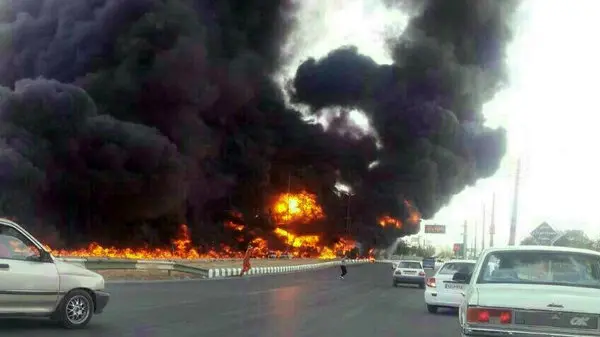 عجیب ترین عکس از انفجار تانکر بنزین در بزرگراه + عکس