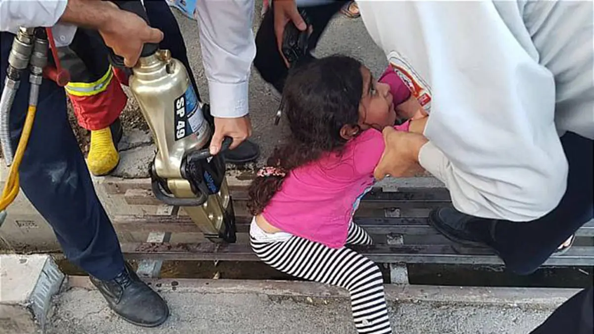 حوادث رکنا: با تلاش آتش نشانان پای دختر بچه ای که در لابه لای نرده های جوی آب گرفتار شده بود، رهاسازی شد.