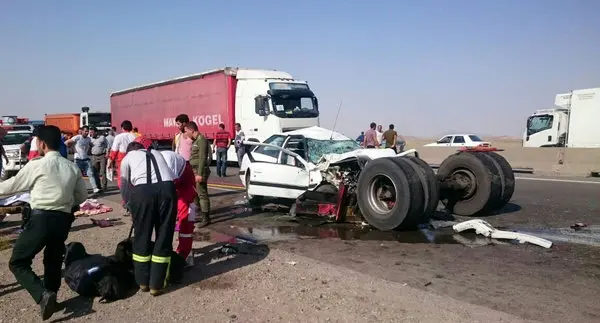 عکس عجیب از صحنه تصادف / تانکر سوخت 3 سرنشین پژو را در محور ساوه سلفچگان کشت