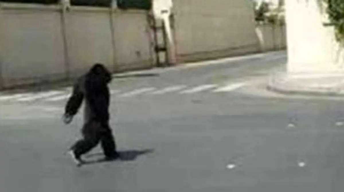 رکنا: پیاده روی یک گوریل وحشی با کفش کتانی در خیــــــــــــــــــابانهای عربستان مردم را شگفت زده کرد.