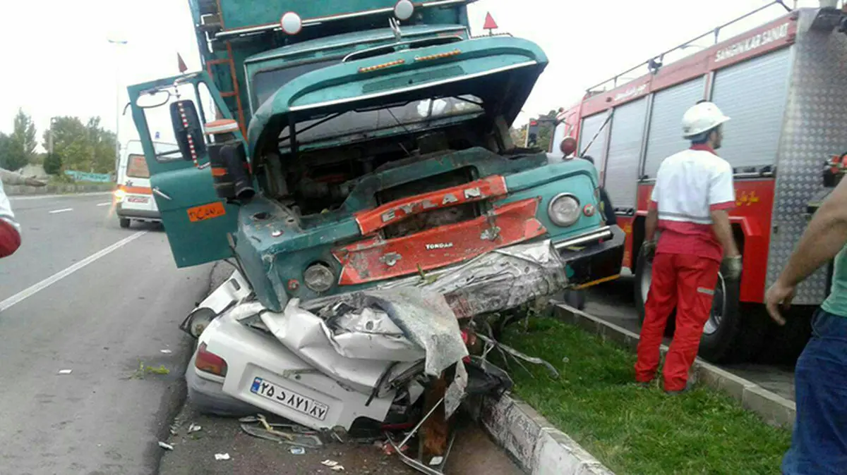 برخورد مرگبار پراید با کامیون در قلعه حسن خان