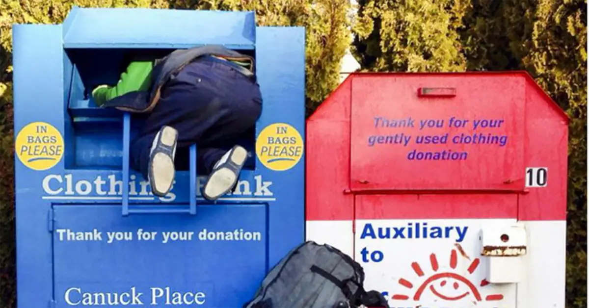 زنی که به صورت زشتی در صندوق لباس های اهدایی گیر کرد! + عکس