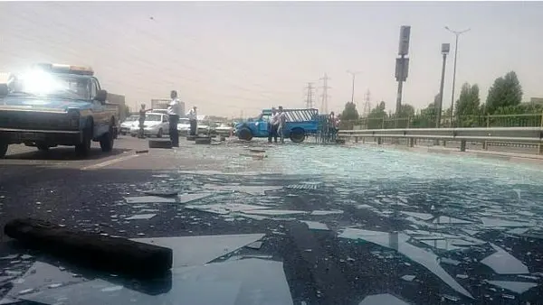 حوادث رکنا: واژگونی خودروی سواری نیسان وانت حامل بار شیشه و آیینه در بزرگراه آزادگان منجر به پخش شدن قطعات شکسته شده شیشه در بزرگراه شد.
