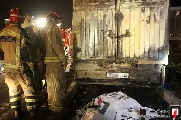 وی افزود: خودروی سواری پس از واژگونی به حالت سر و ته بر روی زمین و قسمت اتاق بارعقب کامیون قرار گرفت و سپس طعمه آتشسوزی شد.