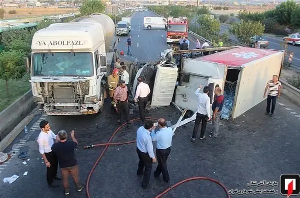 حوادث رکنا: دو خودروی سواری پراید و تاکسی ون و دو دستگاه خودروی سنگین کامیونت ایسوزو و خودروی حامل تانکر، در بزرگراه شهید لشگری به شدت با یکدیگر برخورد کردند.