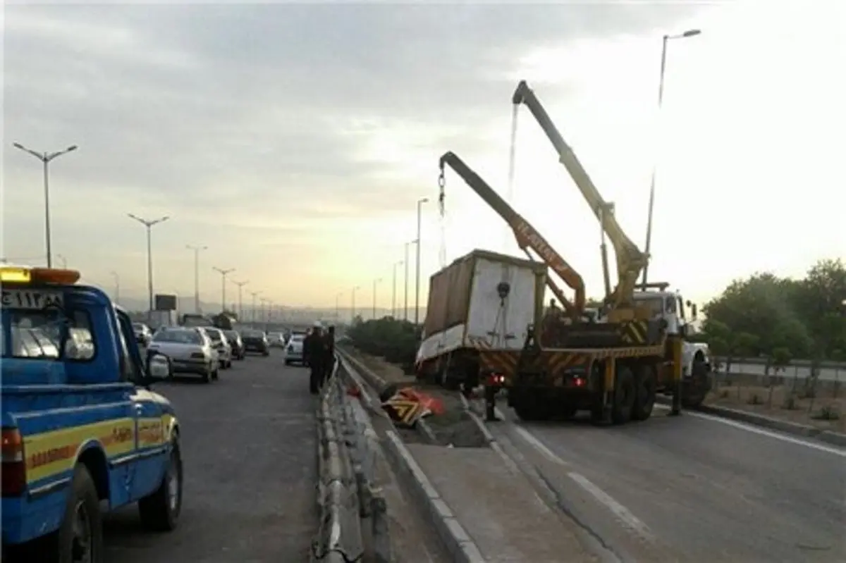 تصادف تریلی با نیوجرسی باعث ترافیک شد+ عکس