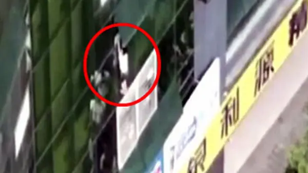 اهالی یک محله در چین هنگامی که چشمشان به کودکی معلق از طبقه چهارم یک ساختمان خورد، سریعا با آوردن پارچه ای بزرگ و نگه داشتن آن زیر ساختمان برای نجات کودک اعلام آمادگی کردند.