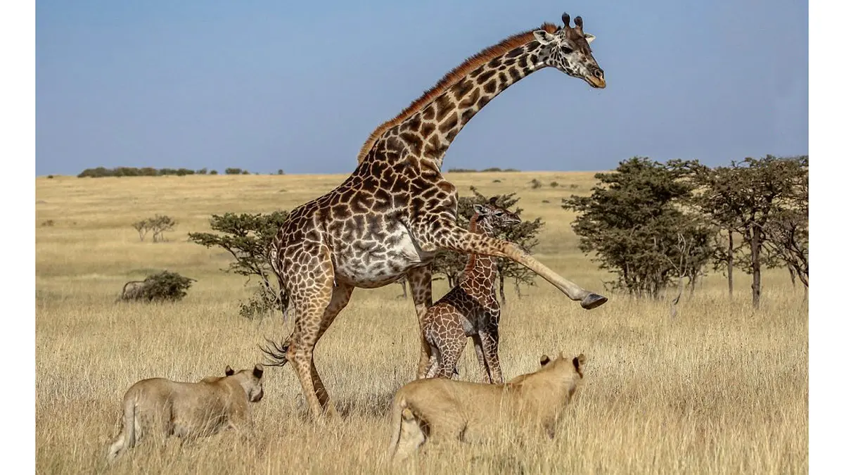 عکاسان زمانی این صحنه را ثبت کردند که گلهی شیرها بچه زرافه و مادرش را در دشتی از آفریفا محاصره کرده اند و سپس با پریدن یکی از شیرها بر روی مادر زرافه سعی کردند تا آنها را از یکدیگر جدا کنند. این حادثه Incident در اوایل هفته گذشته در منطقه محافظت شدهای به نام ماسای مارای اتفاق افتاده است.در تصاویر دیده میشود که مادر تمام سعی خود را به کار میگیرد تا با ضربه زدن به این دو شکارچی فرزند خود را از چنگال گله شیر گرسنه دور نگه دارد. اما متاسفانه علی رغم تلاش بسیار او، یکی از شیران با پریدن بر پشت مادر زرافه باعث میشود تا او لحظهای از بچهی خود غافل شود و همین امر راه را برای گلهی شیر هموار کند تا راحت تر بتواند مادر و فرزند را از هم جدا کنند." اینگونه به نظر میرسد که بچه زرافه چند روز بیشتر از عمر کوتاه او نمیگذشت و اگر ضربهای که رزافه مادر سعی داشت با پا به شیر وارد کند عملی میشد میتوانست به راحتی موجب مرگ این حیوان دردنده شود" این جملات را آقای نامپاسو راهنمای محلی در منطقه محافظت شده (نام ماسای) بیان کرده است.زمانی که یکی از شیرها به زرافه مادر حمله میکند زرافه مجبور میشود تا برای حفظ جان خود عقب نشینی کند و این دقیقا" همان لحظهای است گله شیر از این فرصت سوء استفاده کرده و نقشه کشتن Killing بچه زرافه را عملی میکنند.تماشا کردن صحنهای که مادر بچهی خود را از دست میدهد بسیار دردناک است حالا فرقی نمیکند که چه نوع حیوانی باشد، اما از همه دردناکتر آن است که این حادثه در مقابل چشمان انسان نقش بسته است. با این حال باید گفت که یک چنین وقایعی به ندرت در حیات وحش دیده میشود.