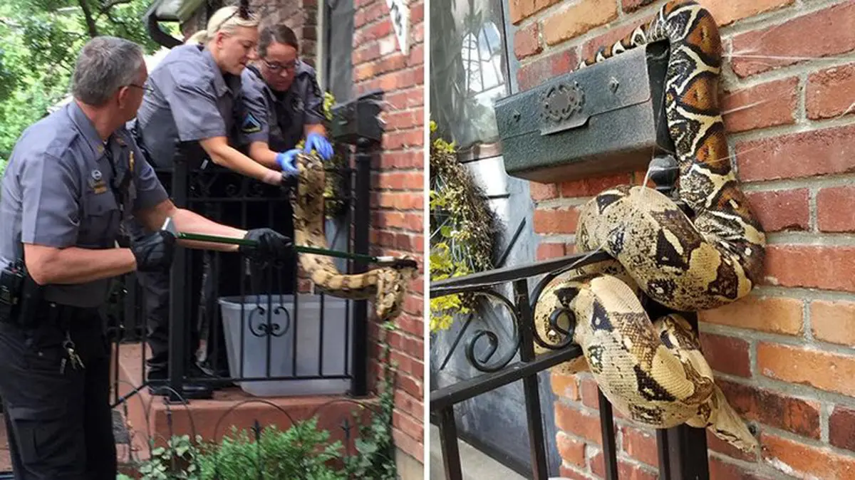 حوادث رکنا: ماموران حیات وحش کانزاس آمریکا پس از تماس تلفنی یک مامور پستی وارد عمل شده و یک مار غول پیکر را که در اطراف صندوق پستی چمبره زده بود زنده گیری کردند.