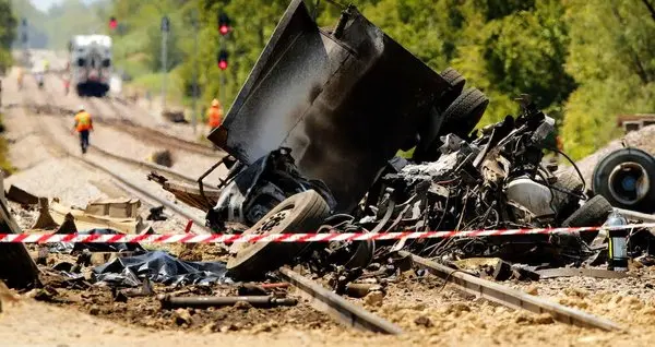 رکنا: برخورد قطار مسافربری با کامیون حمل زباله دو کشته داشت.