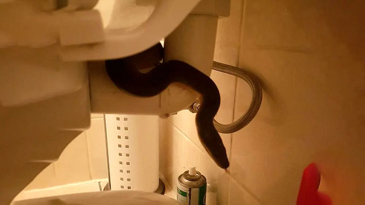 به گفته مارگیر، این مار در دستشویی خانه یکی از شهروندان استرالیا بین جای نشست دستشویی و لوله های آن پیدا شده است.