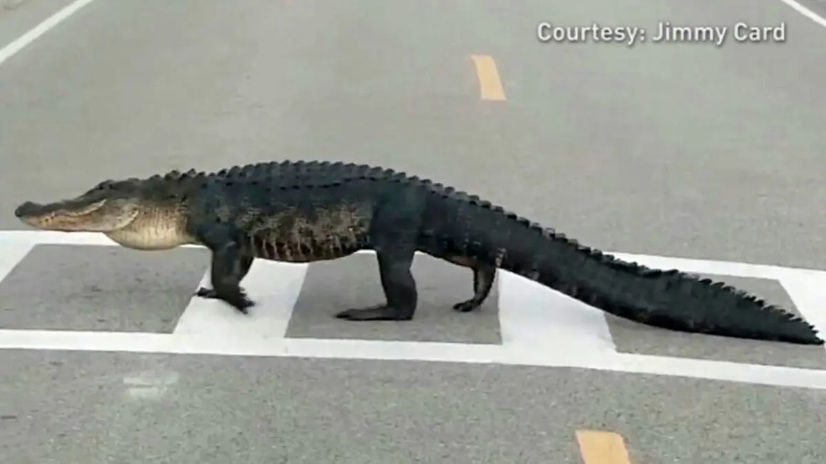 لحظه قدم زدن تمساح بزرگ روی خط عابر پیاده وسط شهر! + عکس