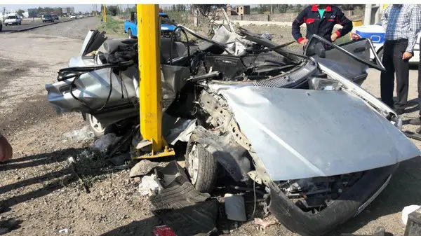 تصادف مرگبار 2 زن اردبیلی پراید سوار با تیر چراغ برق + تصاویر