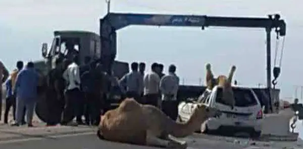 تصادف شاخ به شاخ راننده پراید و شتر در بوشهر / هر دو کشته شدند+ عکس