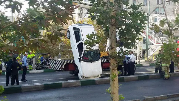 چپ شدن پراید در خیابان ولیعصر سه راه فاطمی + فیلم و عکس