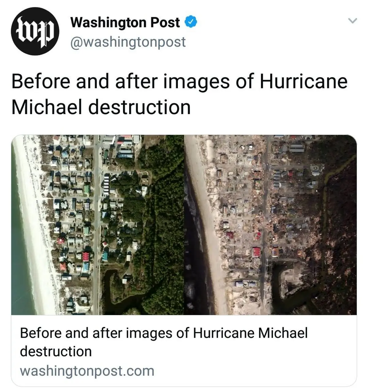 واشنگتنپست با انتشار تصویری، قبل و بعد از طوفان مایکل را به نمایش گذاشته است.خواندنی های رکنا را در اینستاگرام دنبال کنید