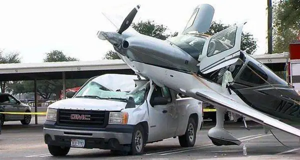 رکنا: هواپیمایی در تگزاس به روی یک ماشین پارک شده فرود آمد.