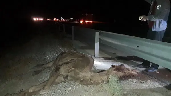 یک شتر در جاده گرمسار - قم 9 سرنشین دو خودرو را مجروح کرد +عکس