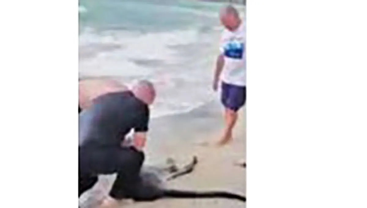 نجات کانگورو از میان امواج دریا + عکس