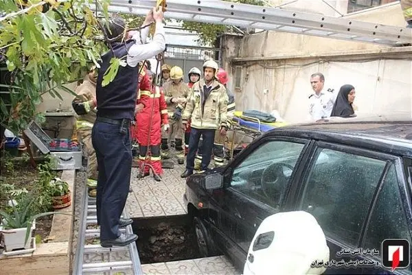 در محل حادثه Incident حیاط یک خانه در هنگام تعمیر خودروی سواری فرو نشست کرده و مرد میانسال را در هنگام تعمیر خودرو به کام خود کشانده بود.