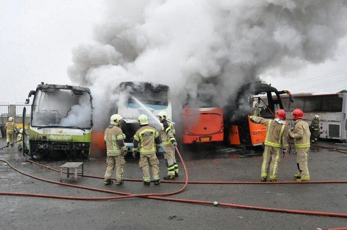 آتش گرفتن 4 دستگاه اتوبوس در جاده خاوران +عکس