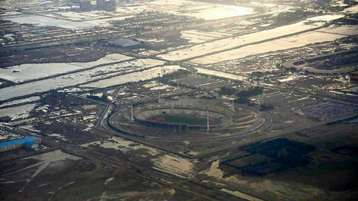 رکنا: نمای هوایی از شهر اهواز و آبگرفتگیهای گسترده حکایت از میزان بارشها در این شهر دارد.