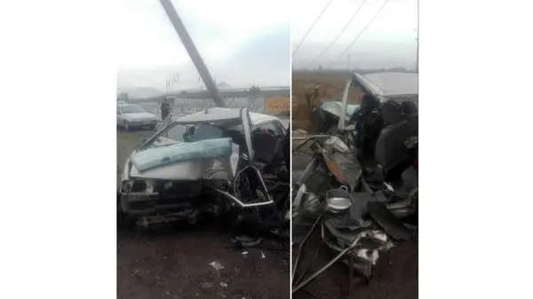 تصادف مرگبار پراید با تیر چراغ برق+عکس