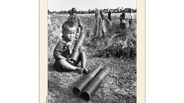 ماهیت کلی ماجرا مدام تلاش میکند که بیان خود را با عنصر کودک به رخ بکشد. کودکی که کودکی خود را زندگی نمیکند. کودکی حس چهره او فشار فضای عکس را سنگینتر میکند کودکی که در شرایط بحران واقعی است. یعنی تهدید مرگ با ابزارهای بازمانده جنگی. محصول مزرعه و گلولههای جنگی نیز رابطهای را پدیدار میکنند که به گونهای سیاستهای استعمار را به بیننده گوشزد مینماید اما از سمتی دیگر کم نیستند مزارعی که زمانی میدان جنگ بودهاند و ابزارهای جنگی جا مانده هر روز جان انسانی را نگیرند. سخت است تصور اینکه در زندگی طبیعی یک کشاورز یا دامدار بیخبر یکباره انفجاری رخ دهد و دستی یا پایی یا جانی از اوگرفته شود.
