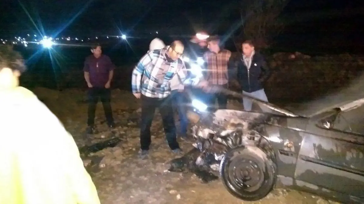 سقوط خودرو پژو داخل یک گودال باعث آتش گرفتن آن شد+ عکس
