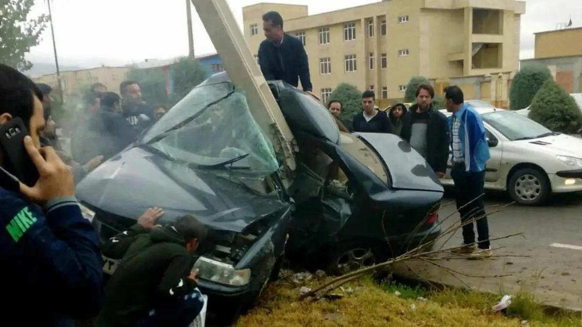 حالا خودش و ماشینش مهم نیست! اون پایه برق حیف شد!
