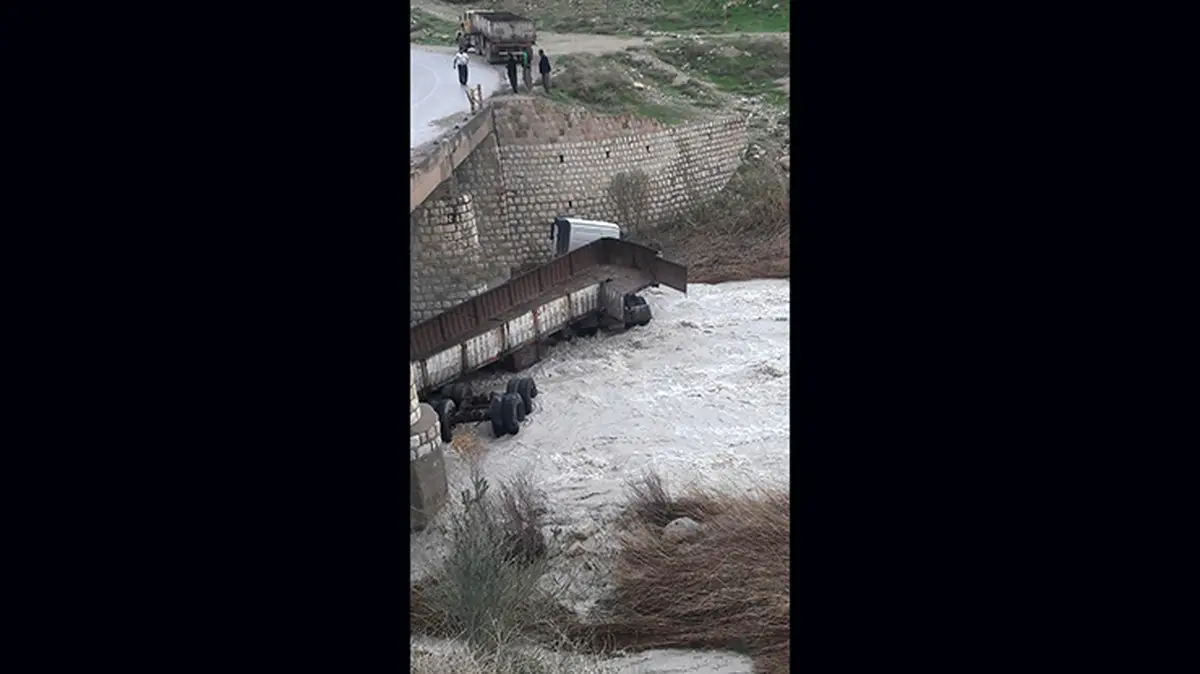 سقوط تریلی 18 چرخ به درون رودخانه ای در مسیر گیلانغرب + عکس