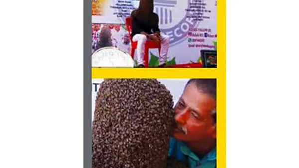 حوادث رکنا: جوان هندی با قرار دادن 60 هزار زنبور عسل روی صورت خود به مدت 4 ساعت رکورد مرد زنبوری را در کتاب گینس شکست.