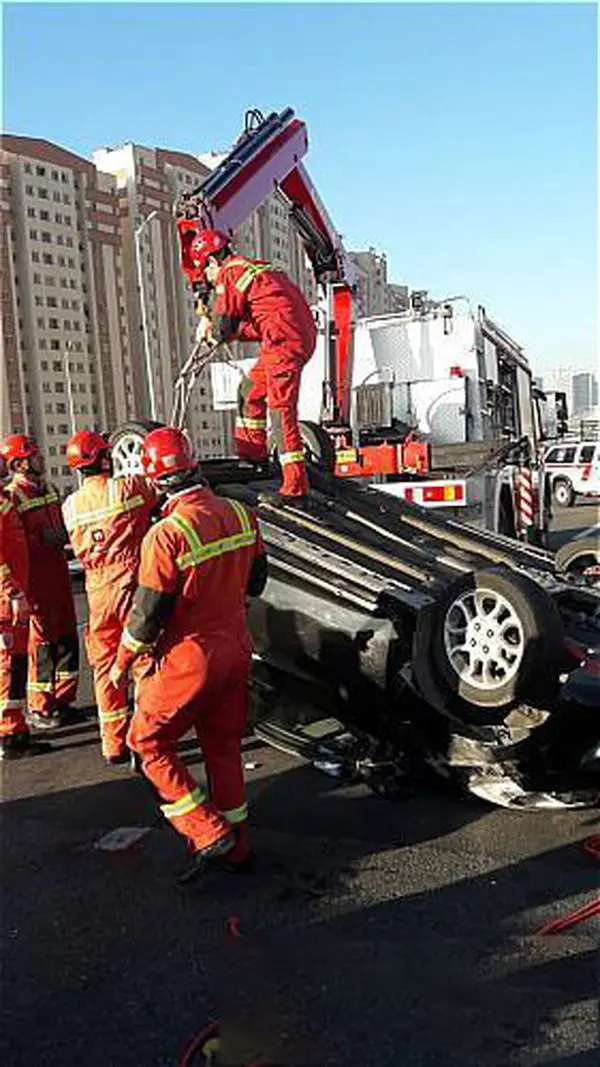حوادث رکنا: واژگونی یک دستگاه خودروی سواری در بزرگراه خرازی یک مصدوم بر جای گذاشت.
